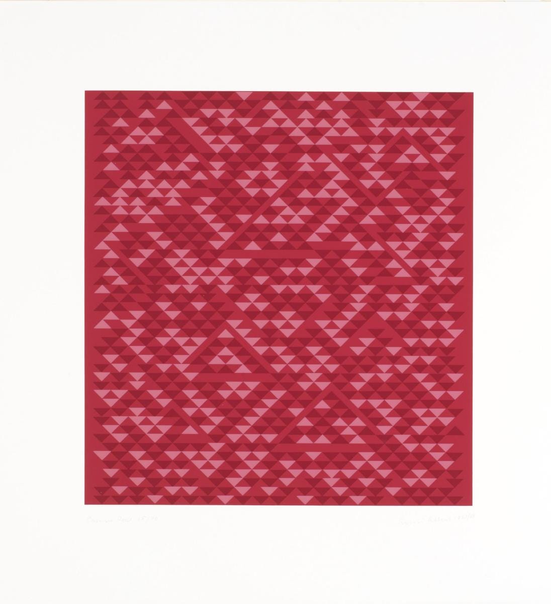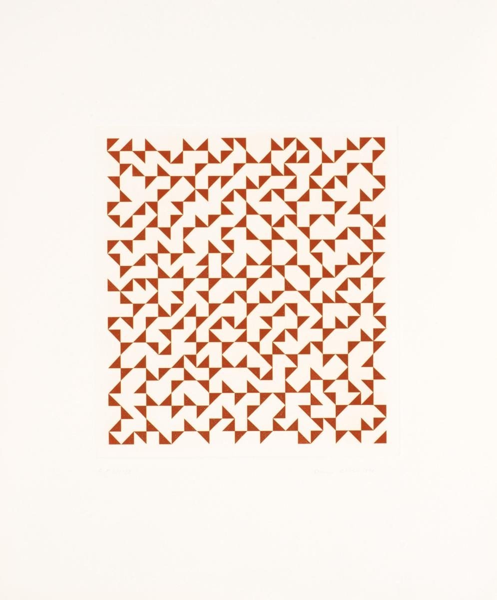 Anni Albers made dense patterns of triangles in hundreds of drawings, using only gridded paper and pencil. You can make your own designs using this gridded table and white triangle tiles. Try to copy the patterns of the prints reproduced here or come up with something completely new. If you’re happy with what you’ve made, take a photo, and tag it #AlbersBlanton.
