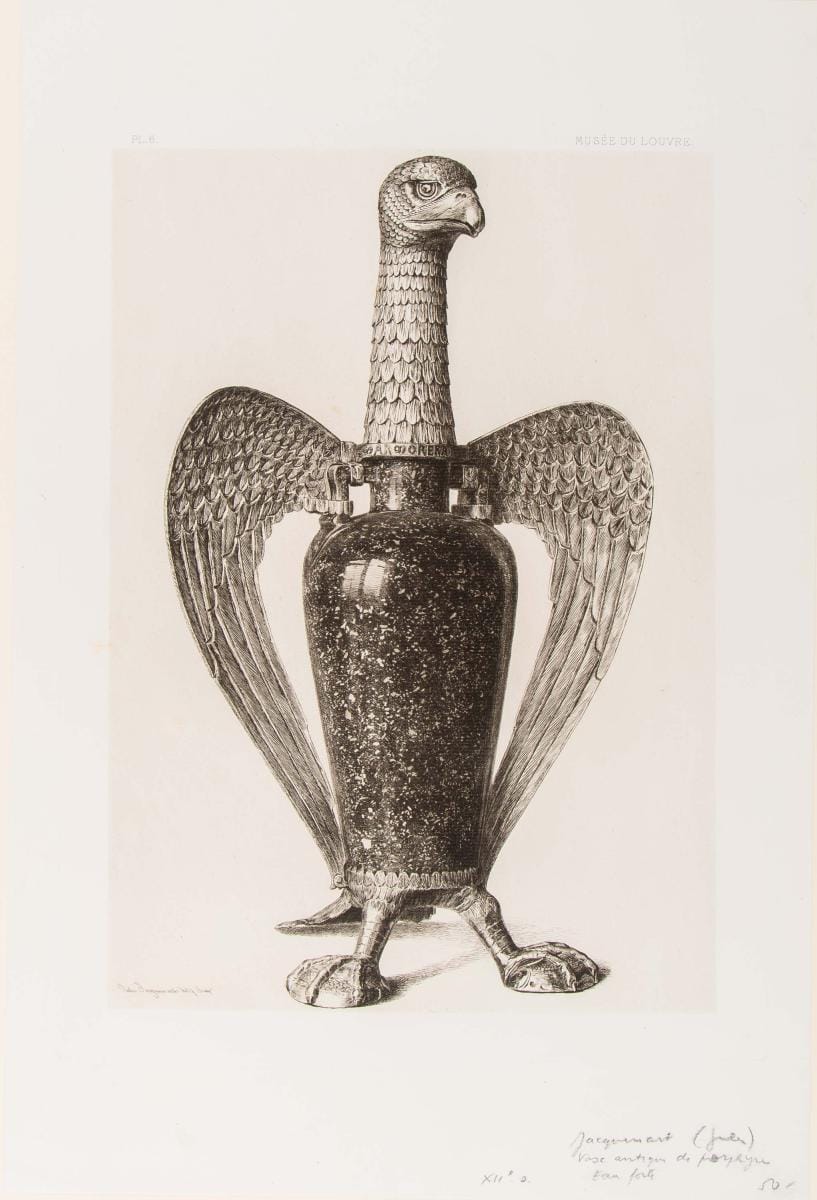 Jules Ferdinand “Jacquemart, Porphyry Vase with Eagle Head, from Les Gemmes et joyeaux de la couronne [The Gems and Crown Jewels],” vol.1, 1865, etching with plate tone, 19 3/16 x 12 13/16 in. Blanton Museum of Art, The University of Texas at Austin, Gift of Mr. and Mrs. Isidore Simkowitz in memory of Amy Cecelia Simkowitz-Rogers, 1998