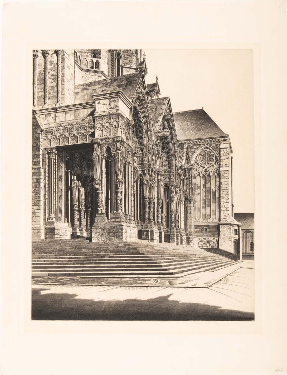 John Taylor Arms, “In Memoriam (The North Portal of Chartres Cathedral),” 1939, etching, 20 ¼ x 15 ½ in. Blanton Museum of Art, The University of Texas at Austin, Gift of Susan Garwood in memory of Sue Ann Reagan, 2004
