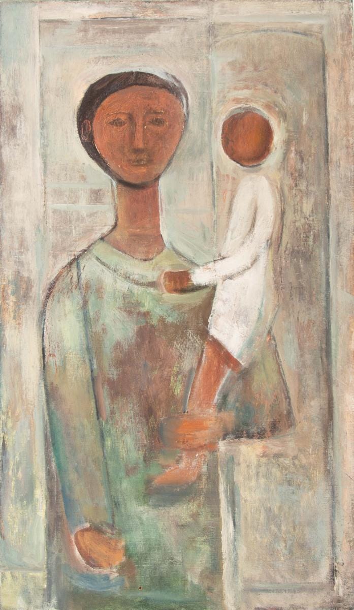 Ellsworth Kelly, “Mother and Child,” 1949, oil on linen, 29 x 17 in. Blanton Museum of Art, The University of Texas at Austin, Gift of the artist, 2018